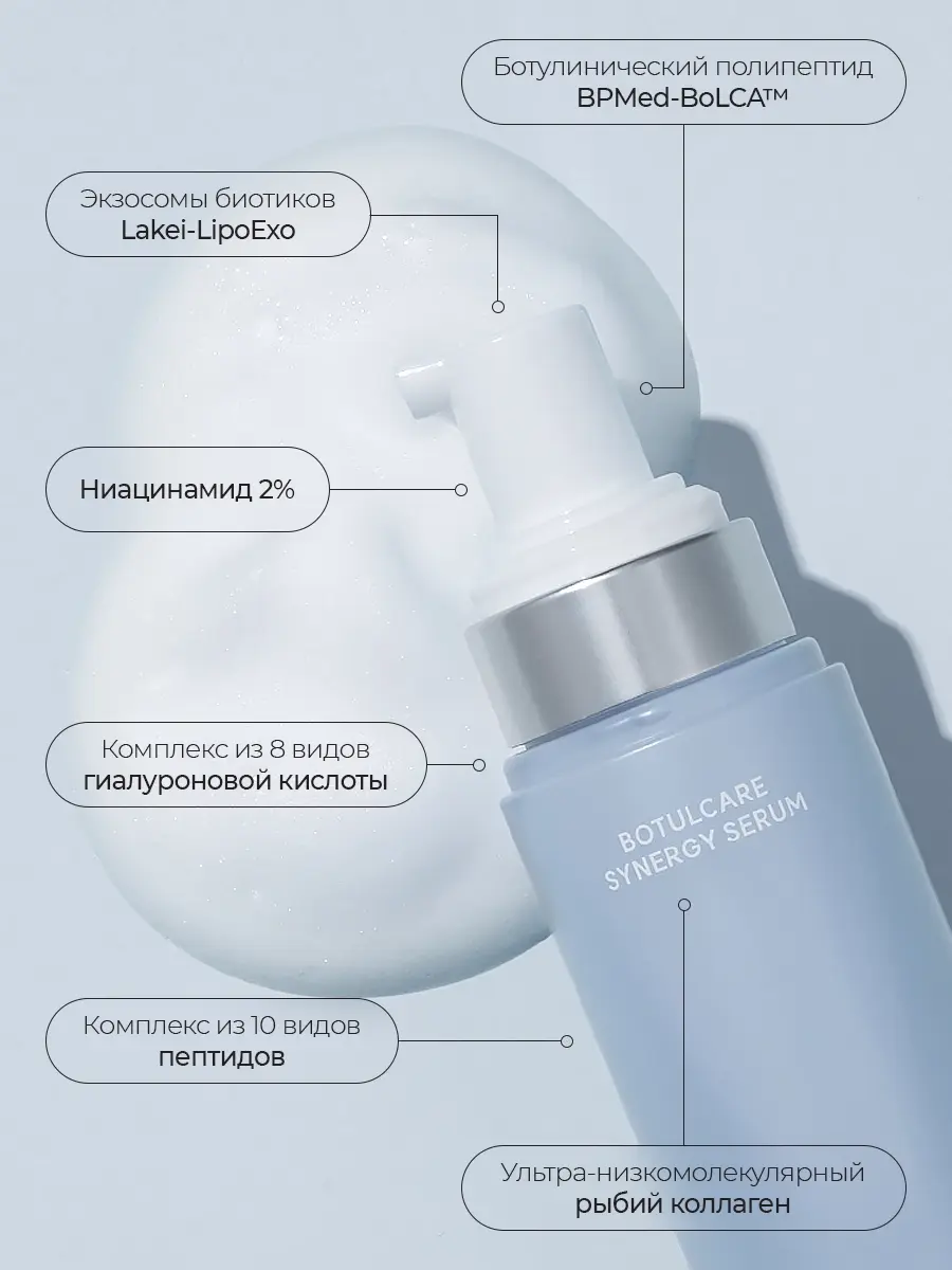 Аденозин, Гиалуроновая кислота, Коллаген, Ниацинамид, Пептиды, Пре/постбиотики, Экзосомы