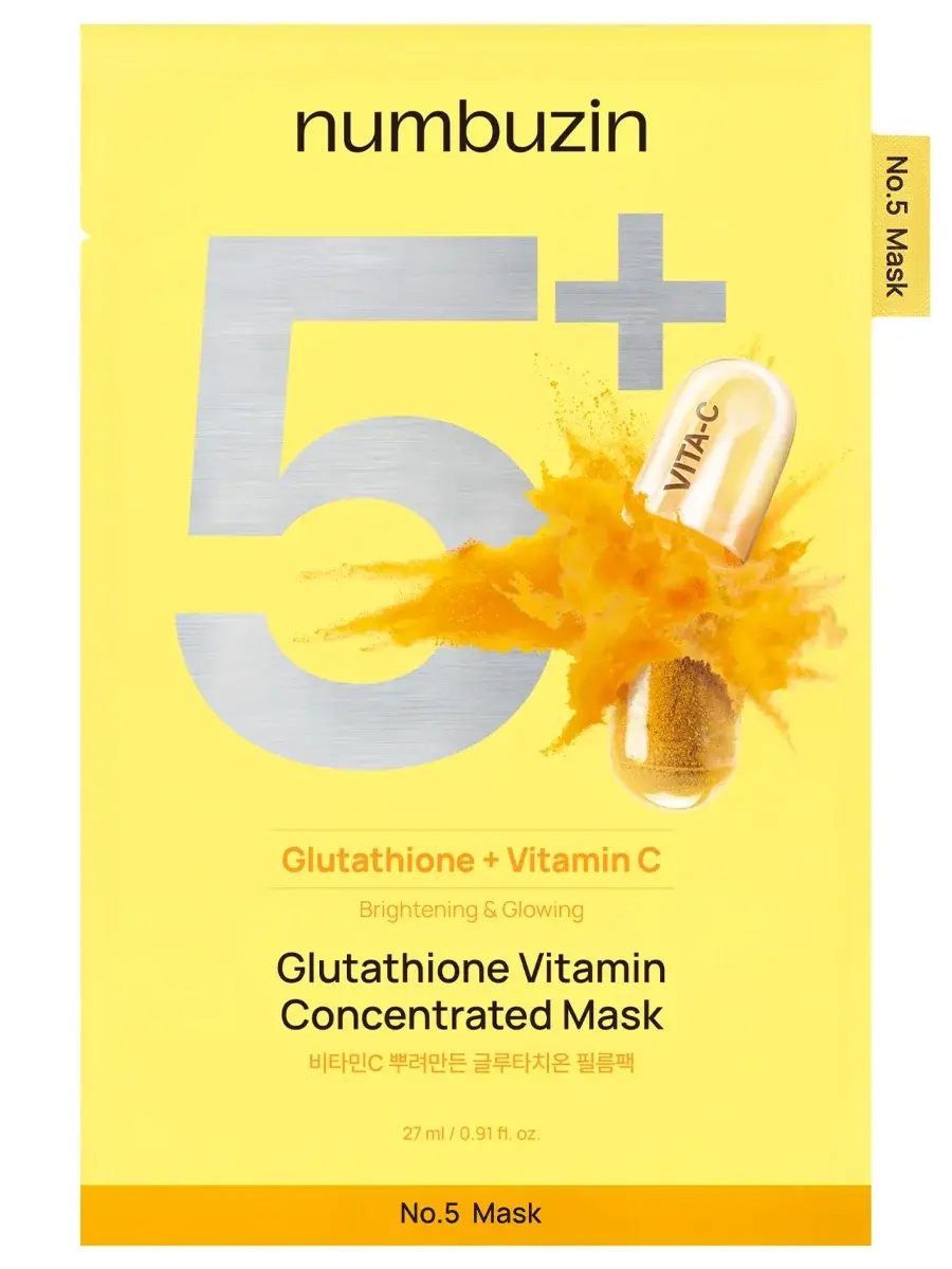 Numbuzin Осветляющая тканевая маска с глутатионом и витамином С для сияния кожи No.5 Glutathione Vitamin Concentrated Mask 27 мл х 5 шт