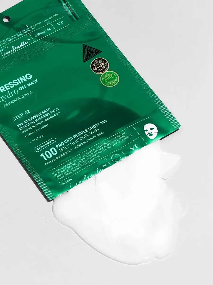 VT Cosmetics Двухступенчатая гидрогелевая маска с микроиглами для увлажнения и успокоения кожи Pro Cica Reedle Shot 100 2Step Hydrogel Mask 33 гр х 4 шт