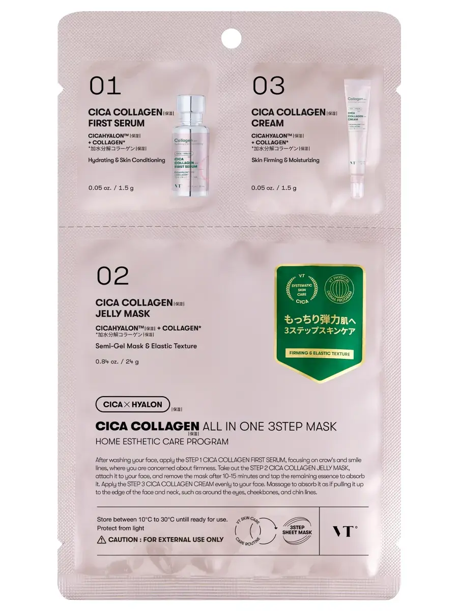 VT Cosmetics Трёхступенчатый набор с коллагеном: сыворотка + тканевая маска + крем Cica Collagen All In One 3Step Mask 1.5+25+1.5 гр